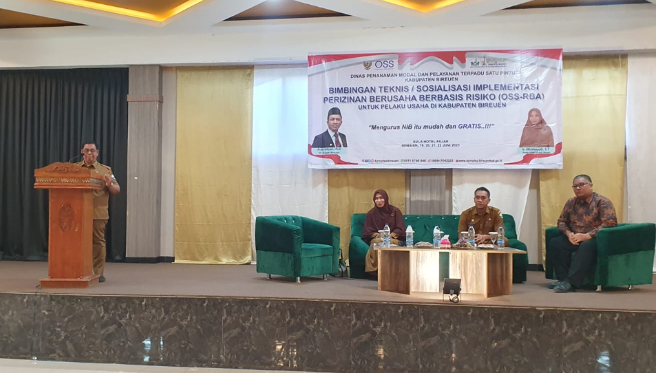 Galeri Bimbingan Teknis dan Sosialisasi Implementasi Perizinan Berusaha Berbasis Resiko 19, 20, 21 dan 22 Juni 2023 di Aula Hotel Fajar Bireuen
